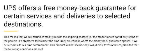 - The delivery issue happened outside of UPS’s control (weather-related delays, customs issues, etc.).
