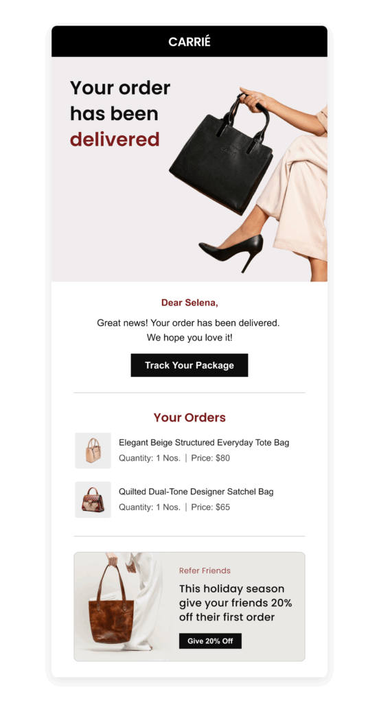 Send an on-brand confirmation with the ETA and next milestone. This is where most brands drop the ball. They hand the experience over to the carrier and hope for the best. Don’t do that.